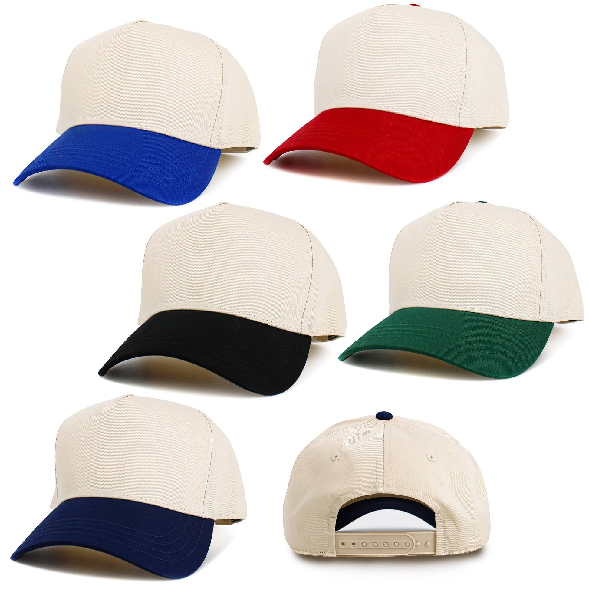 Five Panel Plain Snapback Baseball Cap: Natural/Royal Blue