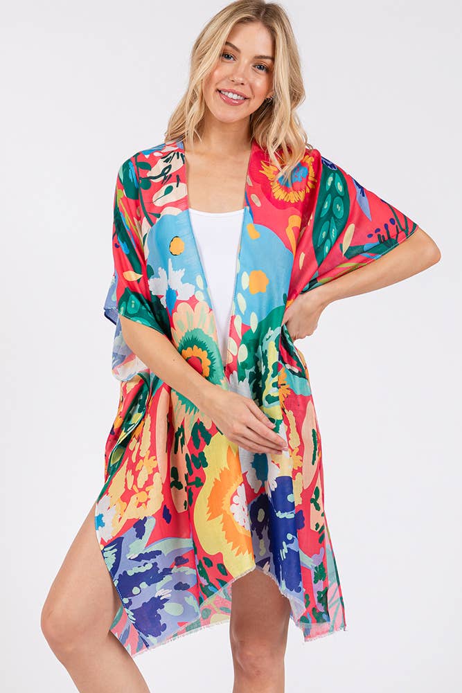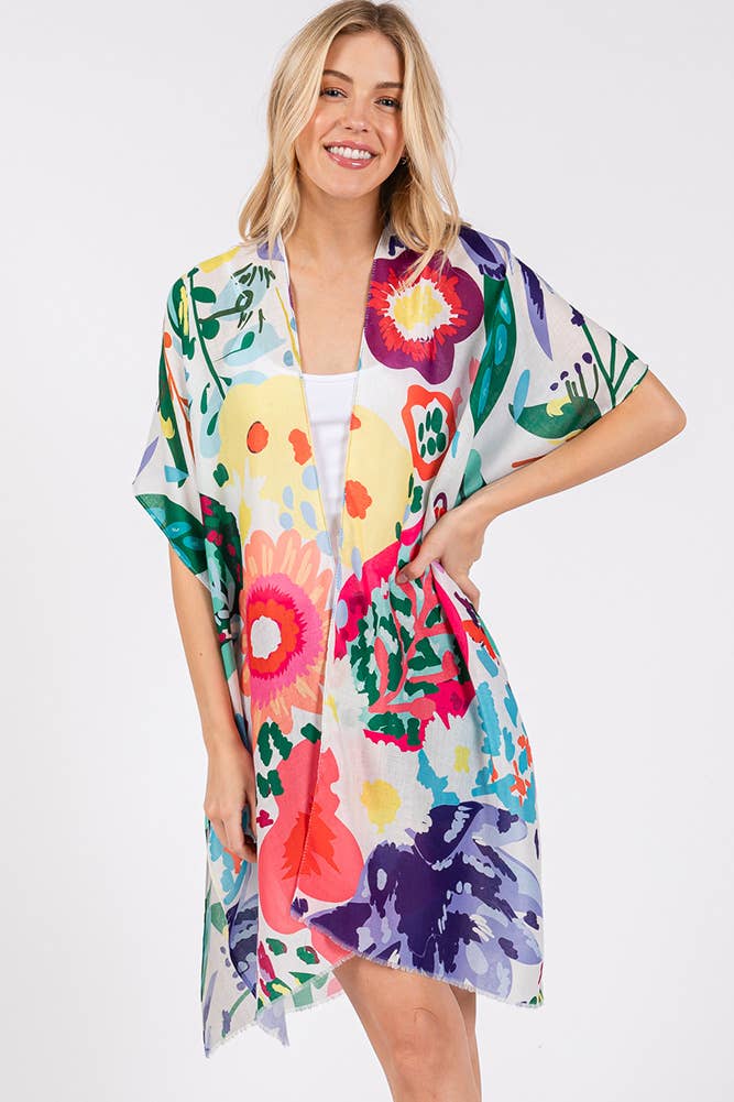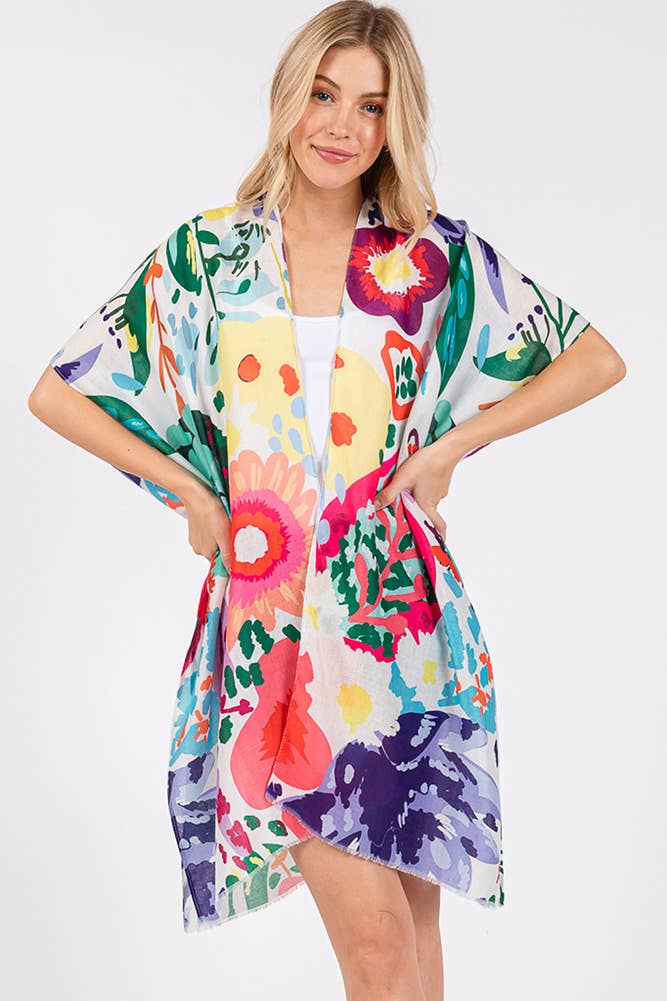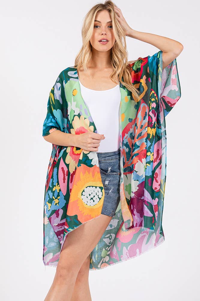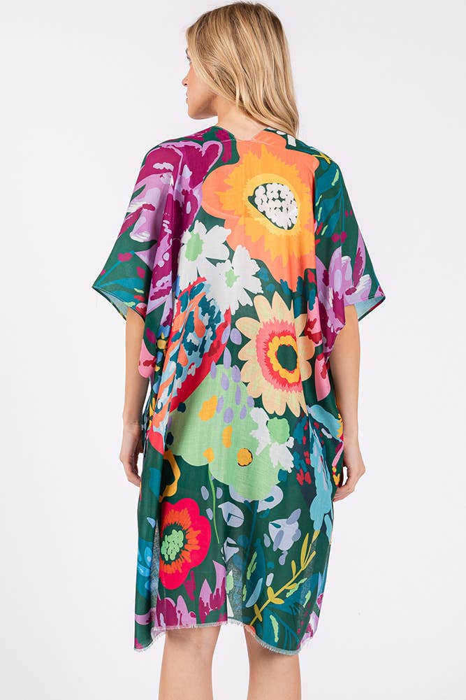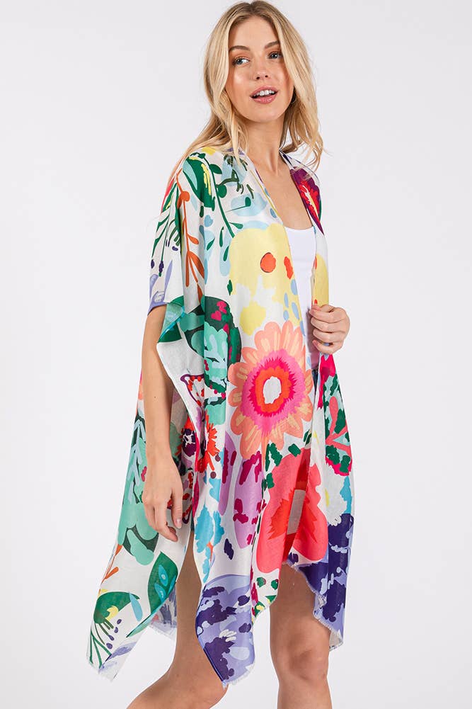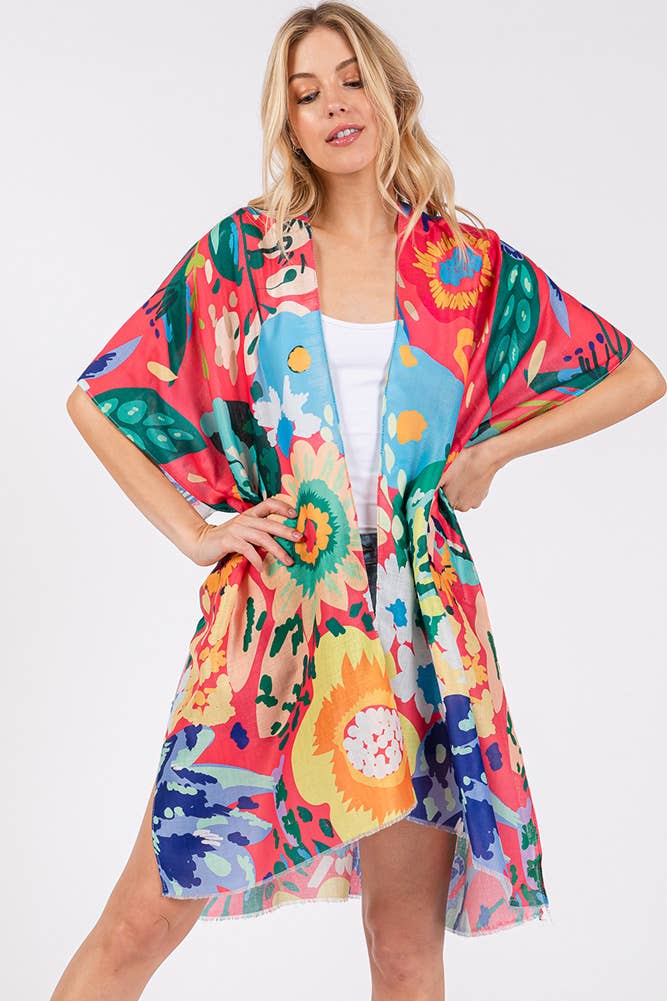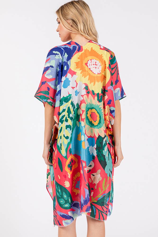 Multi Color Floral Flower Print Summer Kimono Cover Up