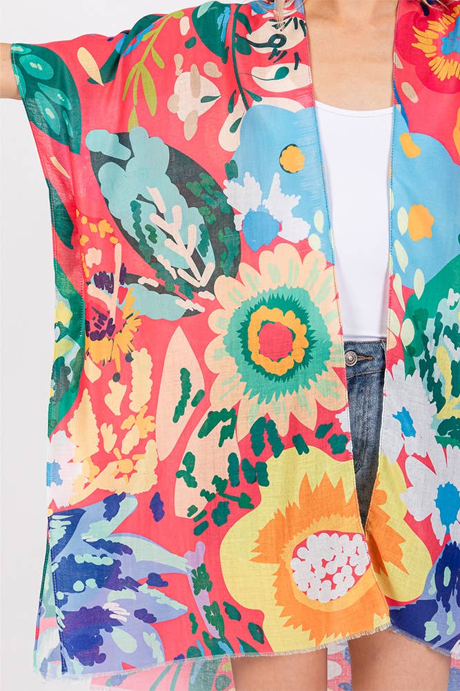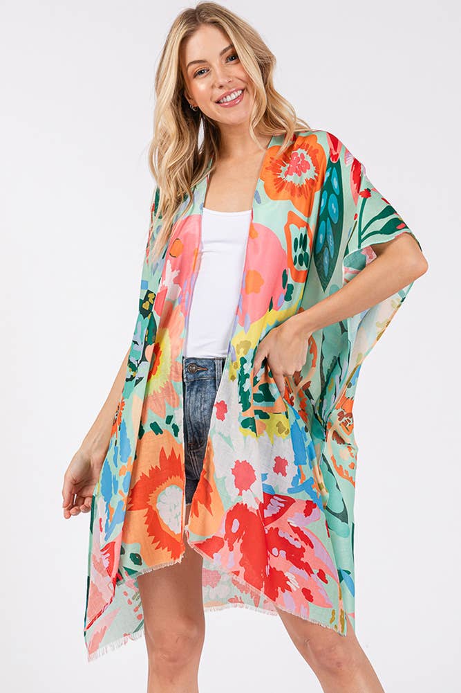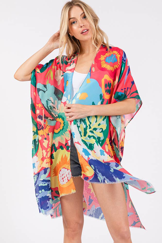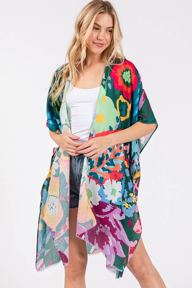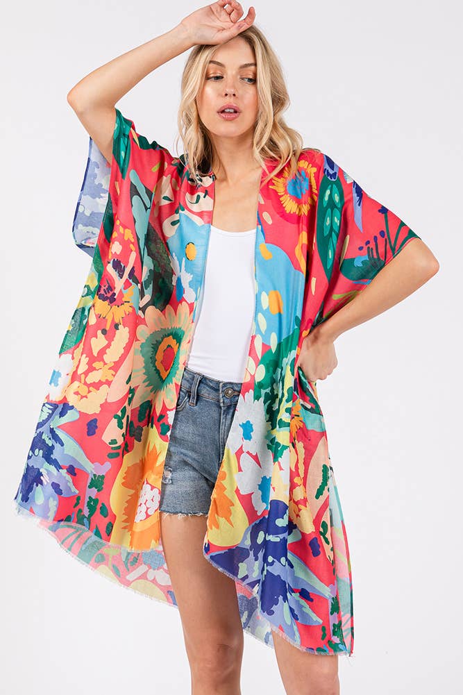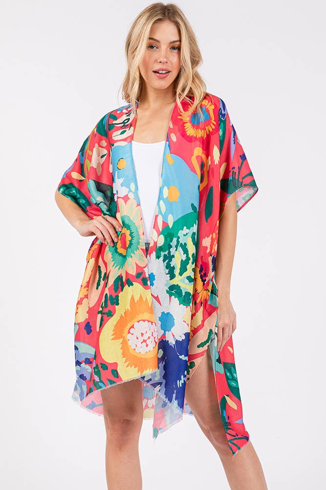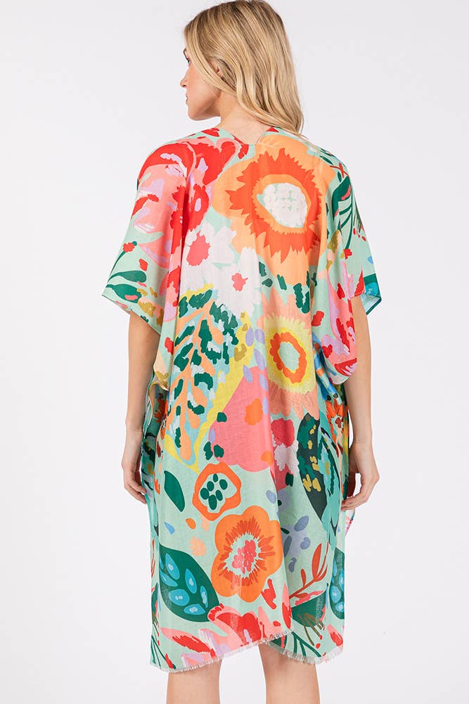 Multi Color Floral Flower Print Summer Kimono Cover Up