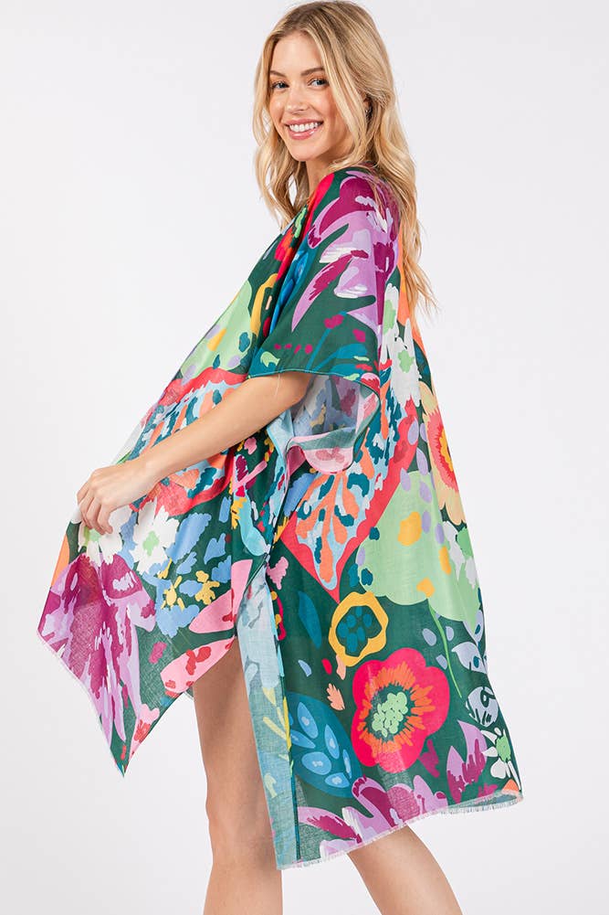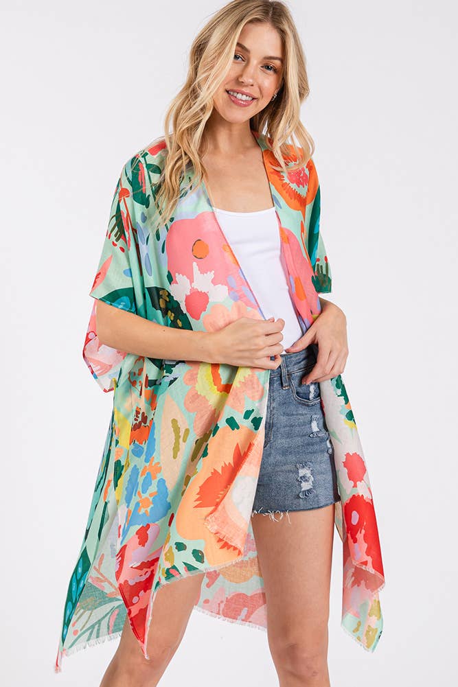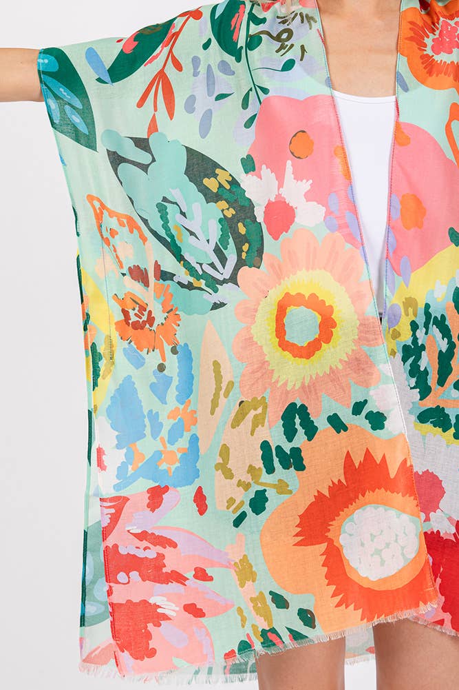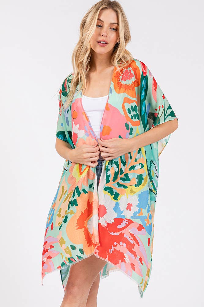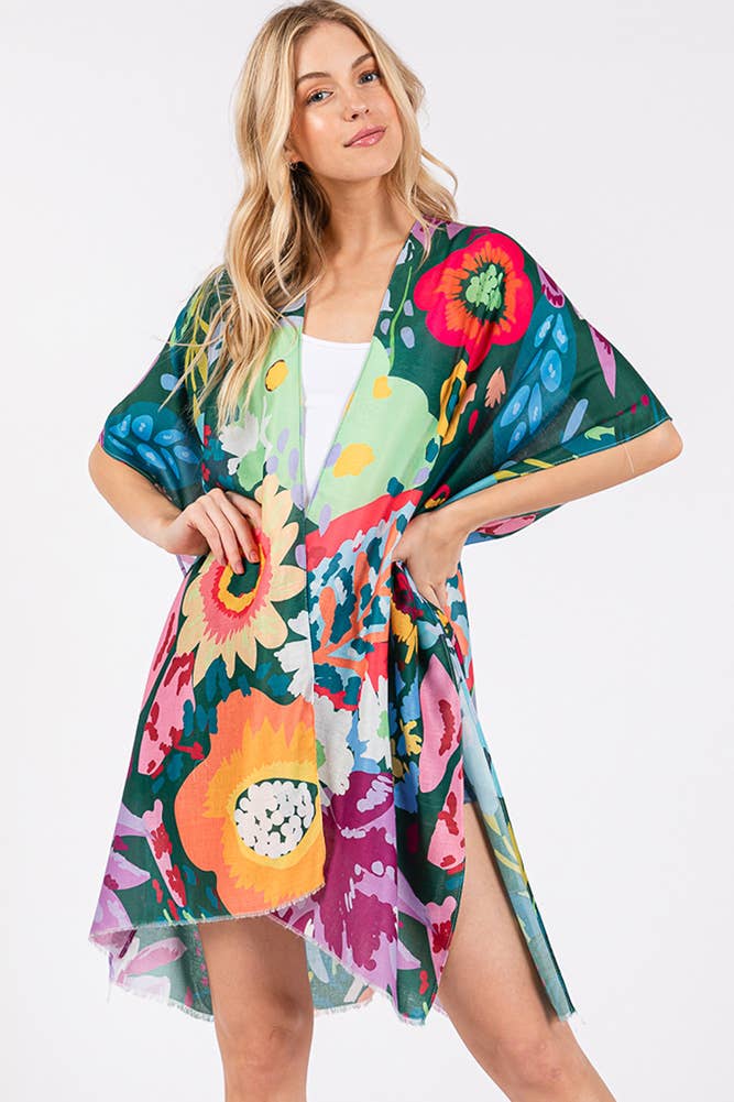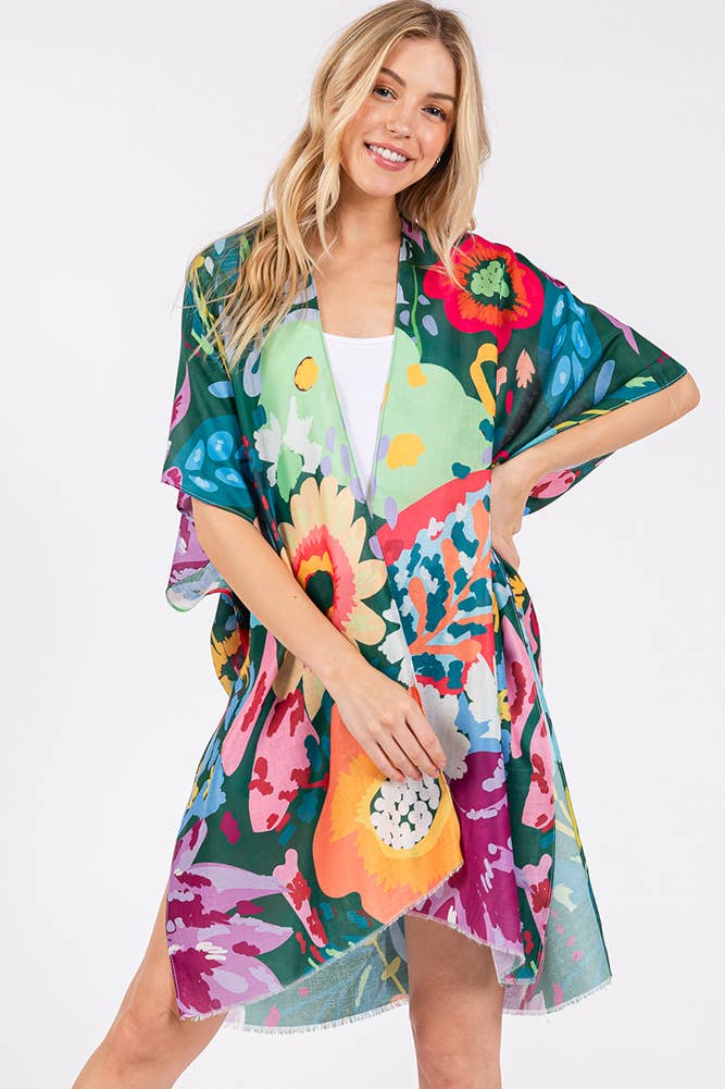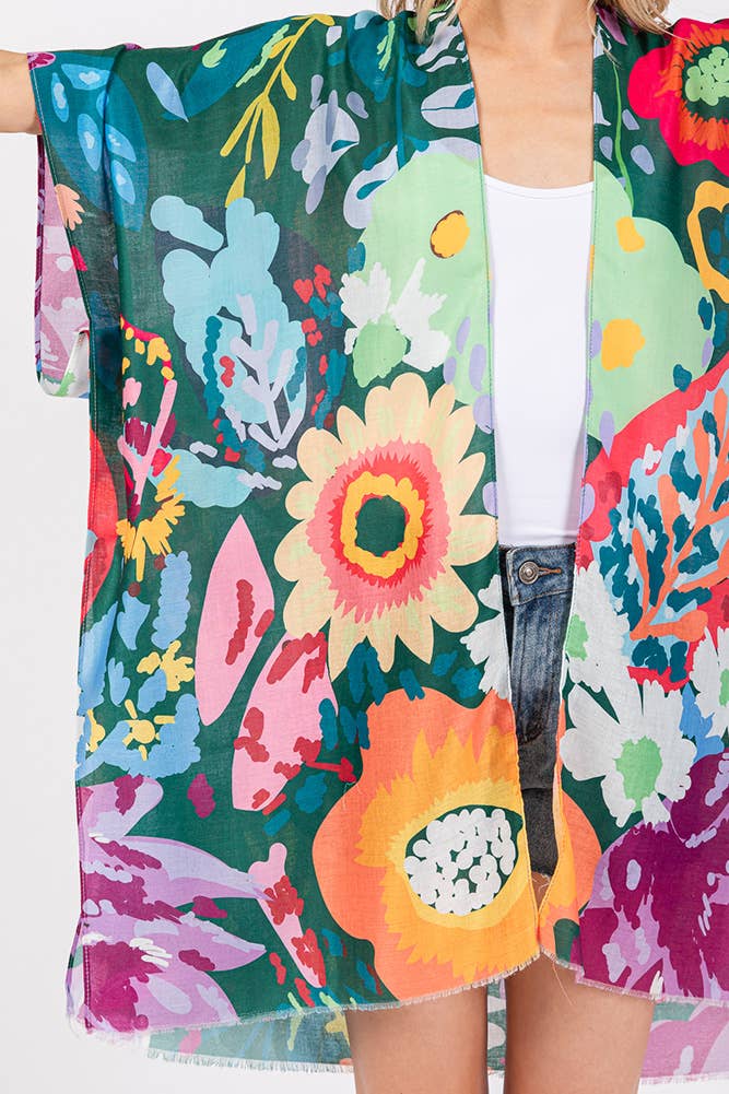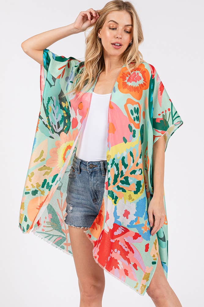Multi Color Floral Flower Print Summer Kimono Cover Up